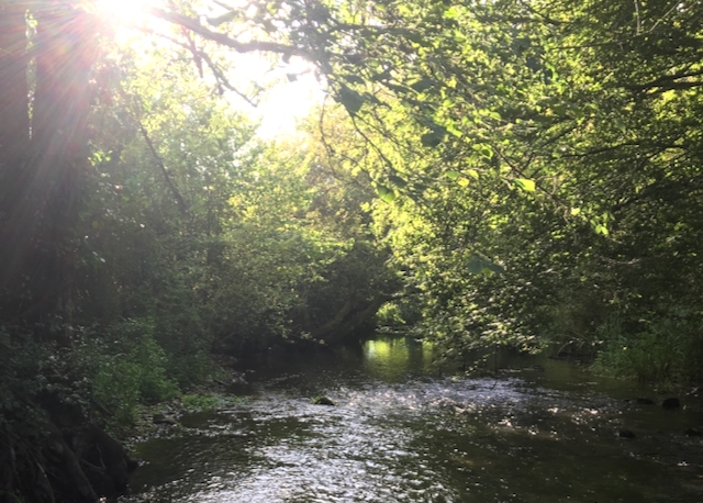 If the woods don’t appeal, then the river might tempt you to go paddling and splashing about to play and keep cool, or alternatively, you might want to sit still long enough for the Kingfishers to come swooping through, or the frogs to come up to the surface, the dragon flies to land, or the deer to sneak up on you! It’s a peaceful spot. It’s very safe and exciting for kids who need to run around and expend some energy but also ideal for those who simply need to get away from it all.