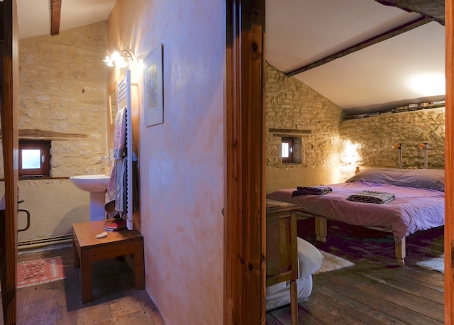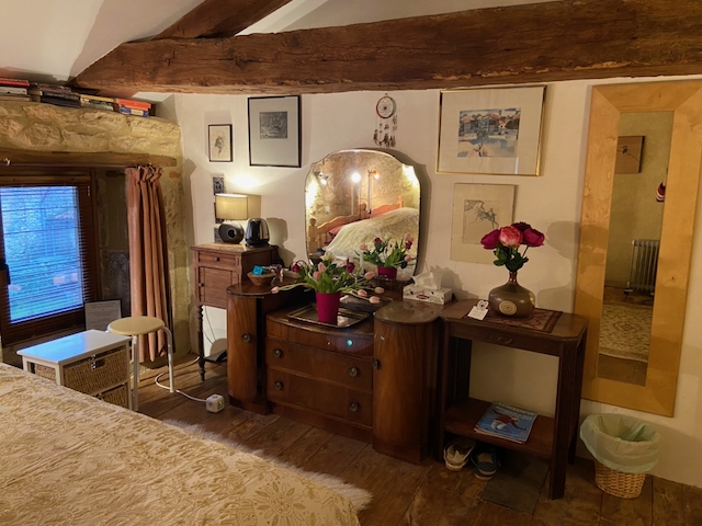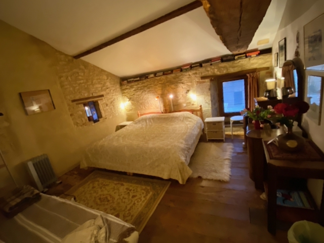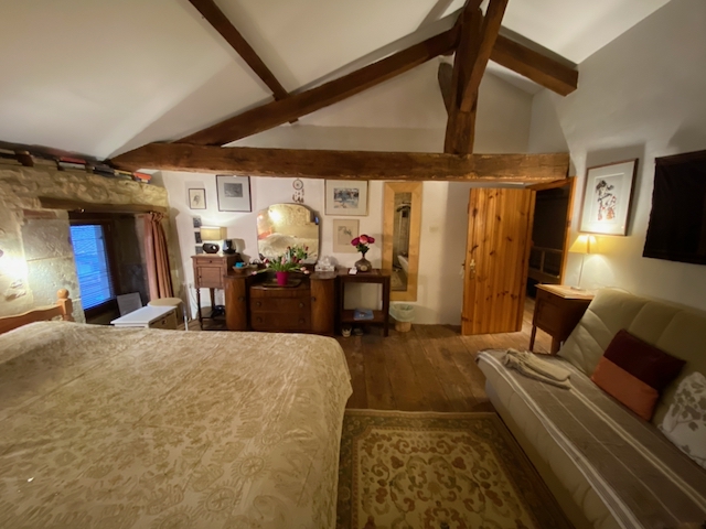 This room is accessed by a staircase to the first floor of our farmhouse where we are also resident. The room is spacious and comfortable and has the only views over the whole valley through century-old windows!