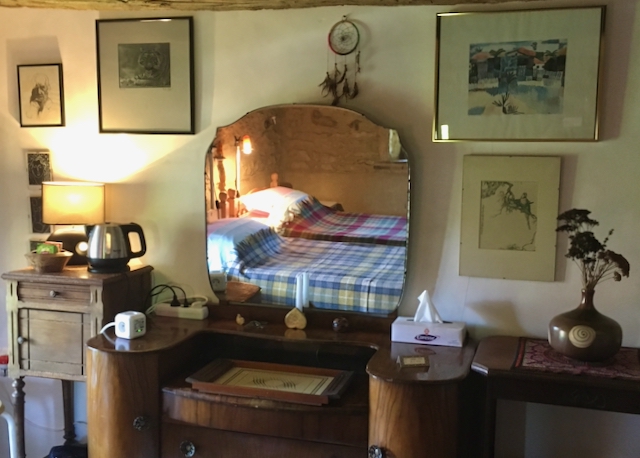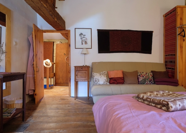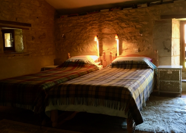 This room is accessed by a staircase to the first floor of our farmhouse where we are also resident. The room is spacious and comfortable and has the only views over the whole valley through century-old windows!